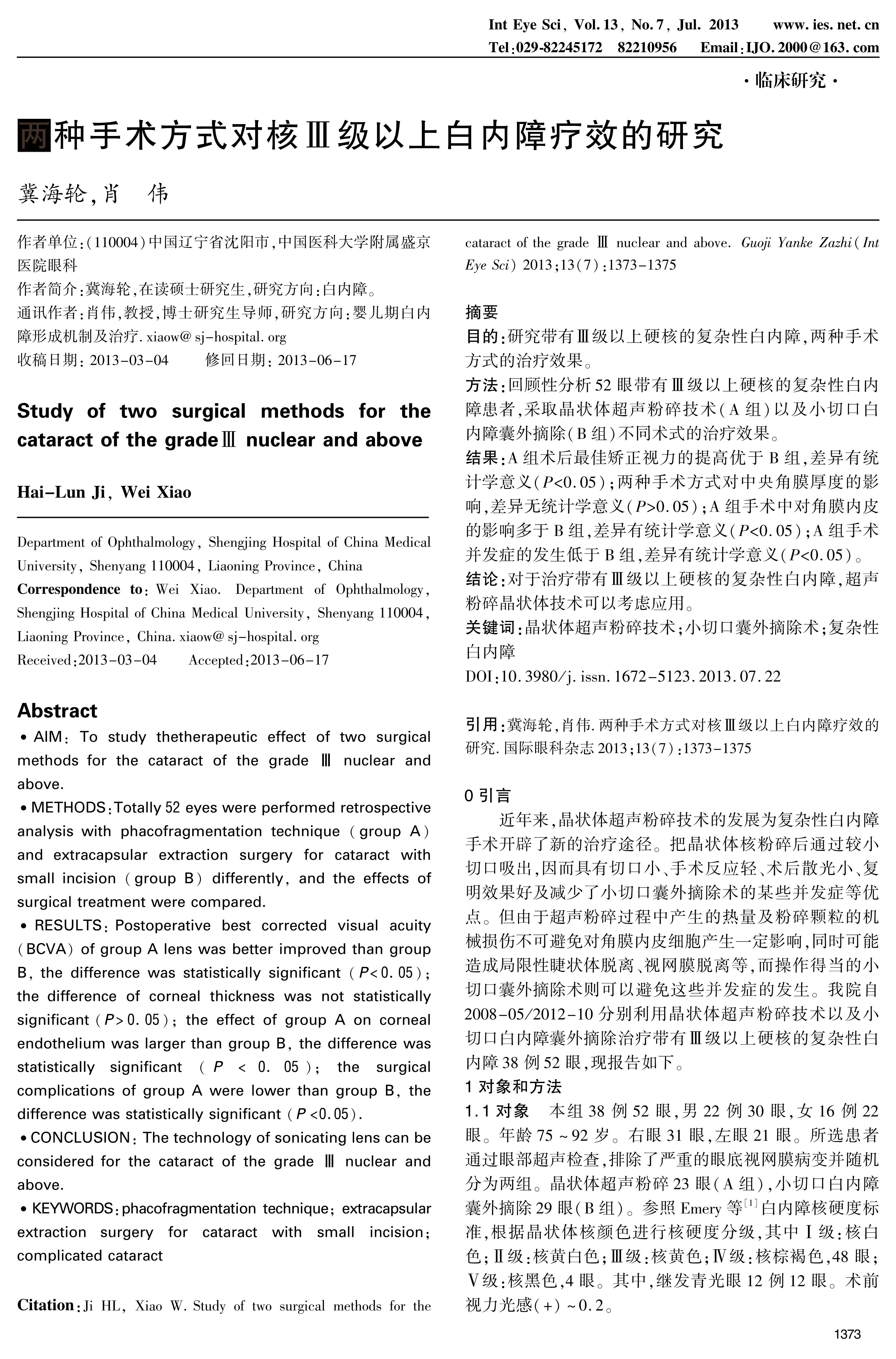 结论:对于治疗带有Ⅲ级以上硬核的复杂性白内障,超声粉碎晶状体技术可以考虑应用。