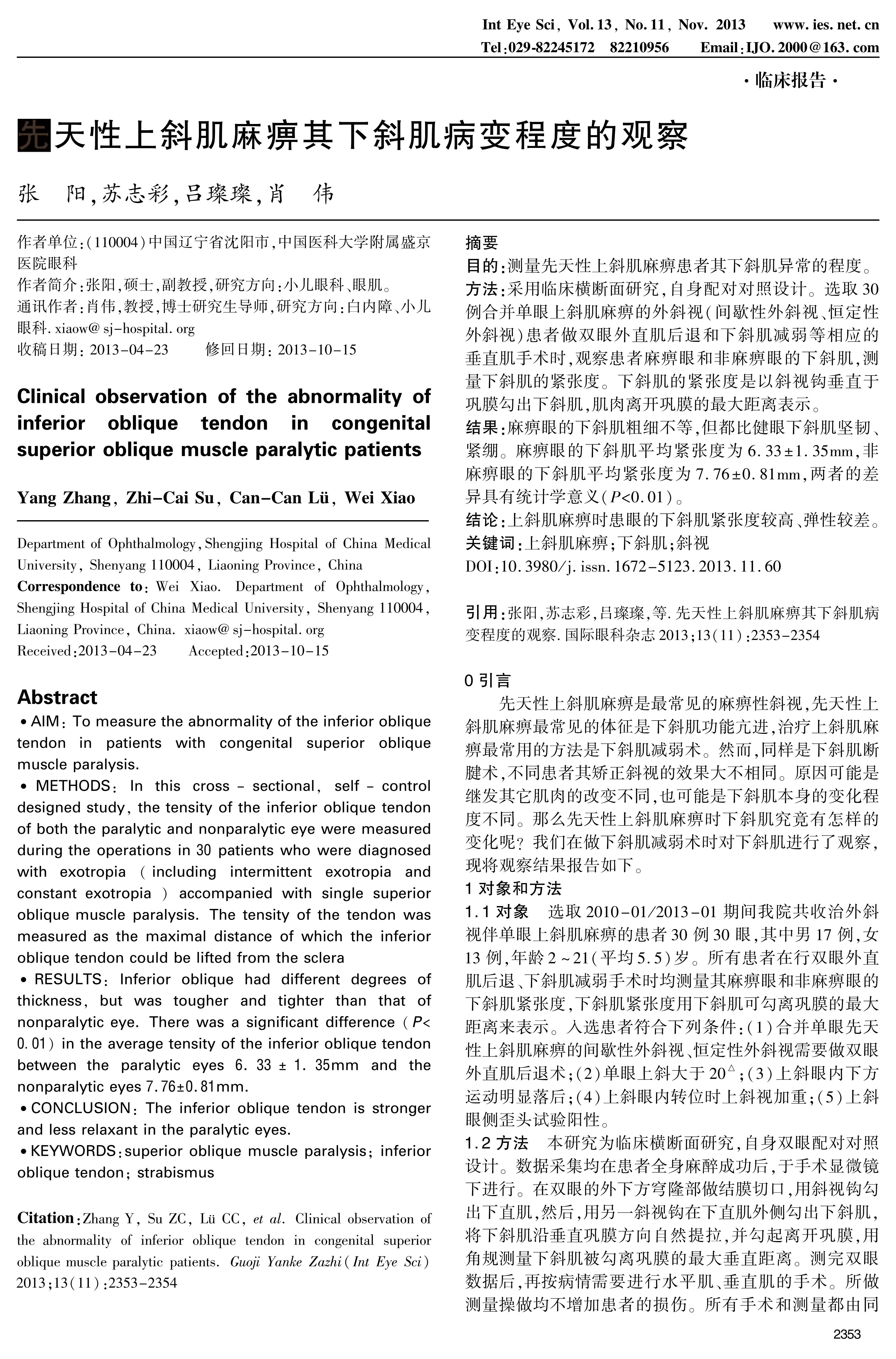 RESULTS: Inferior oblique had different degrees of thickness, but was tougher and tighter than that of nonparalytic eye. There was a significant difference(P<0.01)in the average tensity of the inferior oblique tendon between the paralytic eyes 6.33±1.35mm and the nonparalytic eyes 7.76±0.81mm.