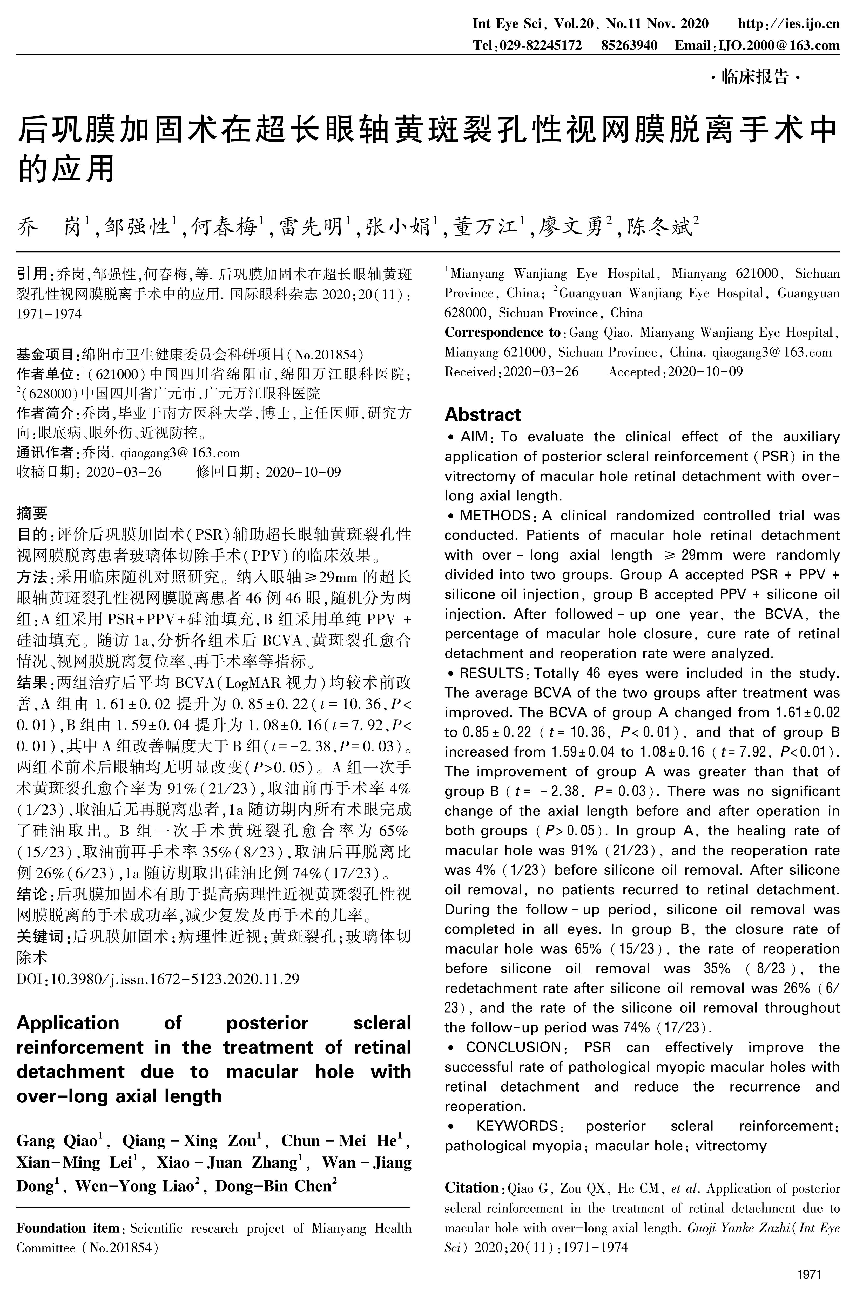 结论:后巩膜加固术有助于提高病理性近视黄斑裂孔性视网膜脱离的手术成功率,减少复发及再手术的几率。