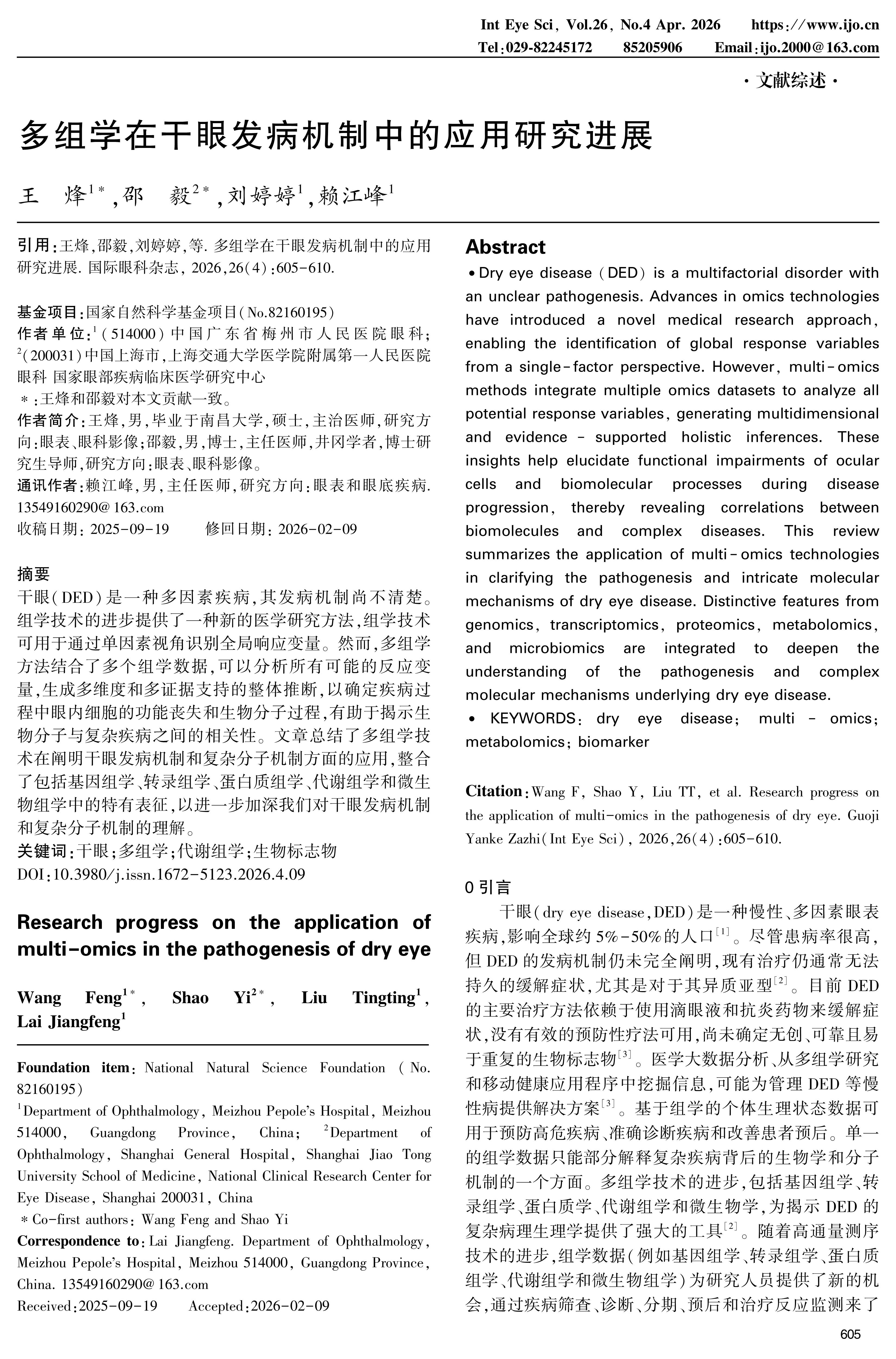 干眼(DED)是一种多因素疾病,其发病机制尚不清楚。组学技术的进步提供了一种新的医学研究方法,组学技术可用于通过单因素视角识别全局响应变量。然而,多组学方法结合了多个组学数据,可以分析所有可能的反应变量,生成多维度和多证据支持的整体推断,以确定疾病过程中眼内细胞的功能丧失和生物分子过程,有助于揭示生物分子与复杂疾病之间的相关性。文章总结了多组学技术在阐明干眼发病机制和复杂分子机制方面的应用,整合了包括基因组学、转录组学、蛋白质组学、代谢组学和微生物组学中的特有表征,以进一步加深我们对干眼发病机制和复杂分子机制的理解。