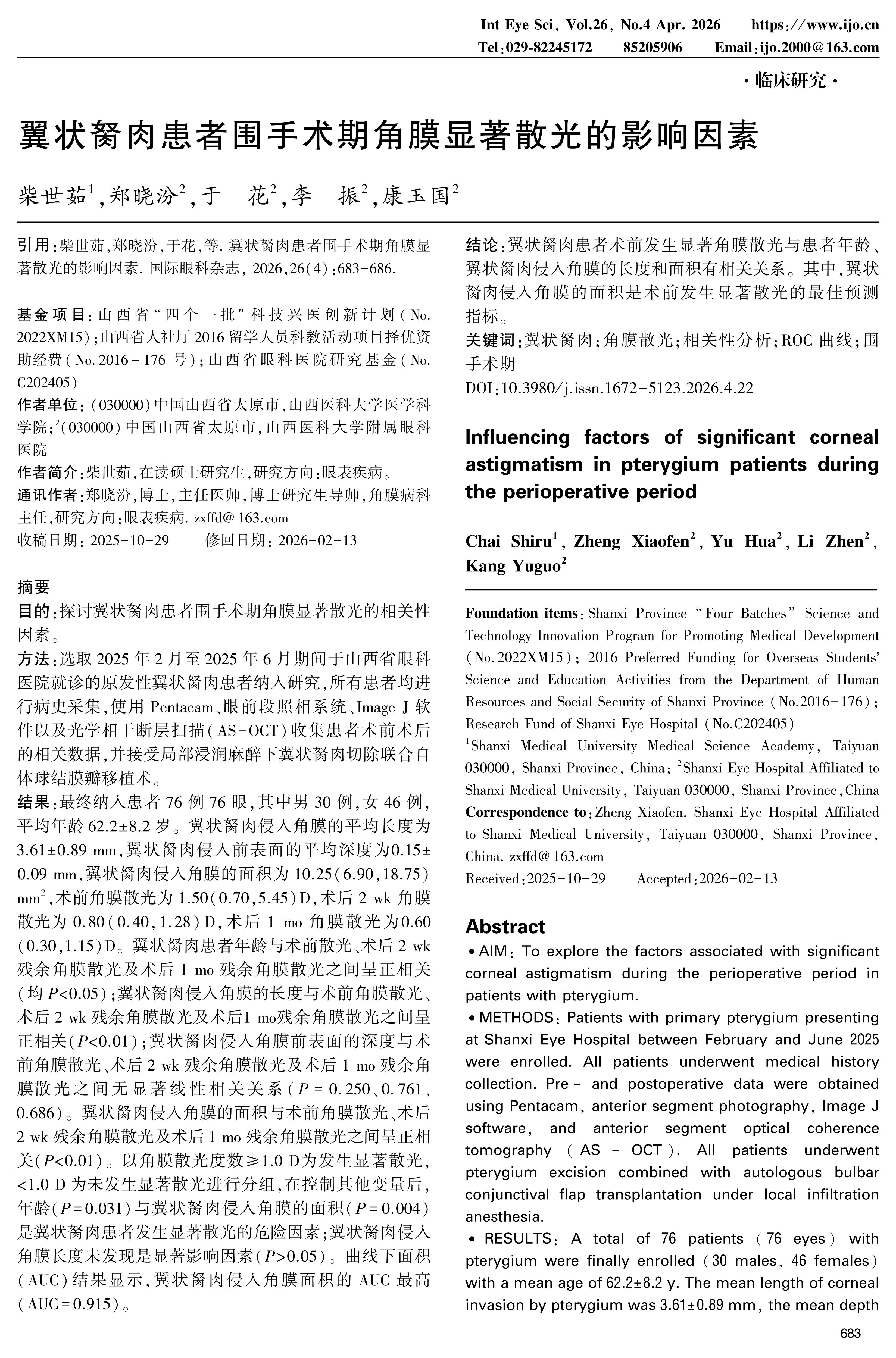 首页 > 过刊浏览>2026年第26卷第4期 >2026,26(4):683-686. DOI:10.3980/j.issn.1672-5123.2026.4.22